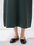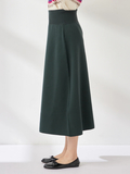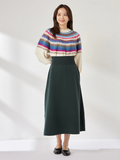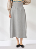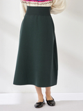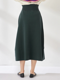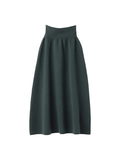 裾にかけてなだらかに広がるセミフレアラインのニットスカート。幅広リブ編みで腰まわりをしっかりサポートします。