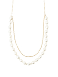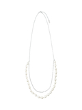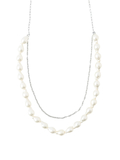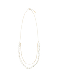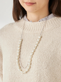 華やかなパール風ネックレスシンプルなトップスにも映える、チェーンとバロックパール風パーツの2連ネックレスです。ボリュームのあるトップスにも合わせやすい長めの設計で、きれい目コーディネートにもおすすめです。