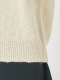 ボディは自然な光沢を放つラメ混の糸、求心柄部分は程よいナチュラルな風合いの糸で編み上げられた、鮮度のあるアイテムです。重みを抑えたミドルゲージで軽い着用感です。
