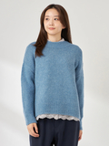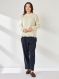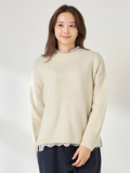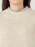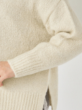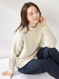 女性らしい襟元を演出したボトルネックデザインです。ややゆとりのあるボディとナローショルダーが優しい印象の甘いムードを演出します。