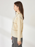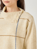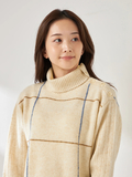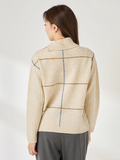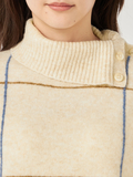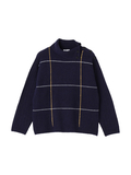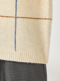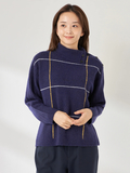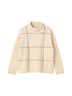 【手洗い可】格子柄のラインがポイントのサイドボタンニット