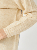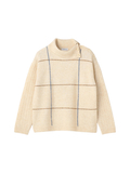 ふんわりした表情の素材に、トラッドな雰囲気の格子柄をのせた編地にしました。