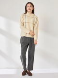 ゆったりしたサイズ感で、自由に着こなせるプルオーバーです。襟は半分留めて折り返すことでおしゃれな表情が生まれ、着こなしのポイントに。