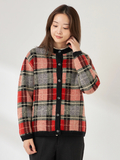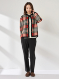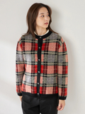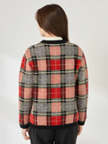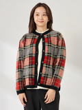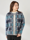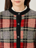 【手洗い可】タータンチェックジャカードのニットジャケット