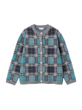 大胆なチェックが目を惹くニットジャケットです。柄を引き立てる程よい着丈で、シンプルなデザインです。