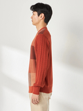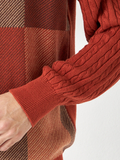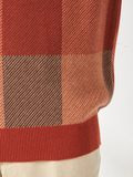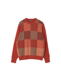 前身頃に大胆に入れたブロックチェックがポイント。同系色で配色しているので大人っぽいニットになっています。