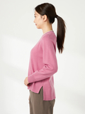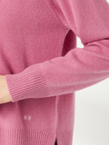 きれいな色のウールカシミヤプルオーバー■デザイン襟のロール部分に見え隠れするように配色ラインを施した、楽しいデザインです。脇にスリットが入っているのでこなれた着こなしを叶えます。■素材カシミヤの風合いを極限まで出した、極上の柔らかさと暖かさを感じられる素材感です。■コーディネート後ろ丈が長めですのでパンツ合わせでも安心感があり、スリットで遊びのあるスタイリングに見せてくれます。