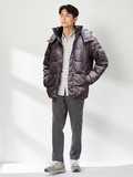 フード着脱メランジ調ダウンジャケット■デザインメランジ調の素材で深みのある素材感。フード着脱仕様のダウンジャケットです。■素材適度な厚みで、深みのある色合いのポリエステルタフタを使用。■コーディネート落ち着いたトーンのシックなデザインで、大人のカジュアルスタイルの主役になるアウターです。冬の都会で過ごすのに最適なダウン分量で仕上げています。