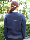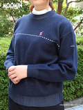 前後に入ったドットのジャガードは、リトルミーのワンピースにあるたくさんの後釦とムーミンの雪についた足跡をイメージ。それぞれの刺繍が可愛くてほっこりします。