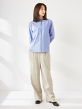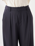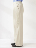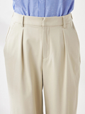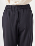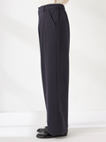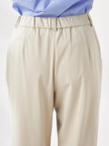 フロントタックがきれいに落ちる上品な印象のジャージーパンツです。ウエストは後ろゴム仕様で快適な着心地ながら、ジャージならではの伸縮性で、腰周りはすっきりした印象です。万能な程よいゆとりのあるストレートシルエットです。