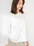 美しいフォルムのスポーティプルオーバーです。綺麗な襟ぐり、袖口のタック、軽やかなヘムラインなど、細かなディティールにこだわった1着です。インナーにした際にもフロントのステッチがさりげないアクセントです。スポーティさと上品さを兼ね備え、シンプルながら1枚で様になります。