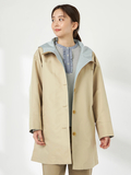 適度なハリがある二重織ポリエステル素材を使用した1枚仕立てのフーデットコート。1枚仕立てならではの軽さが魅力で、軽くたたんで持ち運ぶシチュエーションにも便利なアイテムです。