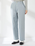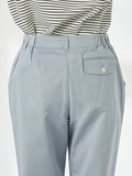ベーシックなチノパンツをベースに、サイドウエストにゴムを施し、動きやすさと美しさを兼ね備えた大人のためのチノパンツです。ワンウオッシュ加工による自然な風合いと、程よく力の抜けた雰囲気が、カジュアルでありながらも品のある佇まいを演出します。