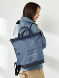 パソコンサイズの荷物も持ち運ぶことができ、仕事にもお出かけにも最適。柔らかく軽いため、使いやすさも抜群です。箔プリントが施されたロゴがキラリと光り、アクセントに。今季は帆布部分を増やし、より軽量に仕上げました。