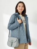 コロンとした形のかわいさと落ち着いた色合いがマッチした、大人かわいいショルダーバッグ。合皮のプレートが高級感を演出します。