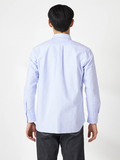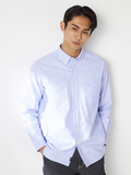 新しい素材で表現する、オックスフォードシャツ。襟はボタンダウンデザインです。