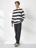 プレッピー配色の太ボーダー柄。比翼部分は従来の杉綾テープではなく、ダンガリー生地を使用しました。ボタンがかけやすいだけでなく、デザインのポイントにもなっています。