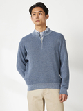 表面感のあるワッフル編みのハーフジップデザイン。着合わせるアイテムを選ばない、オールラウンドなアイテムです。
