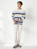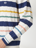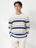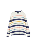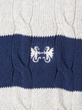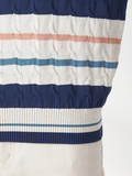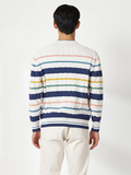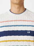 春色を意識した配色と、ニットならではのテクニックで糸を撚り合わせた、春のケーブルニット。アイボリーベースのカラーのみ、マルチカラーのボーダー表現でスペシャル感のある配色に仕上げています。