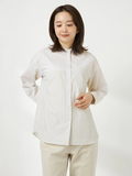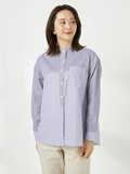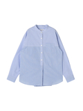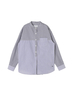 ややゆったりとしたシルエットのバンドカラーシャツです。前後のヨーク・袖・前立てを異なる柄でアレンジしたクレイジーパターンですが、近いトーンの色・柄で組み合わせることで、コーディネートに馴染みすっきりと着用できるアイテムです。