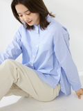 一枚で様になるロングシャツで、すっきりとしたシルエットのボトムスとのコーディネイトがおすすめです。UVガード機能もあり、日差し避けアイテムとして羽織っても◎。シーズン通して活躍するアイテムです。