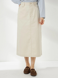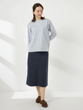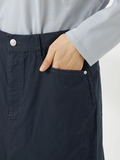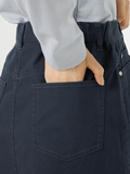 ややAラインの5ポケットスカートです。ウエスト脇に施したギャザーゴムが、快適な履き心地を実現します。
