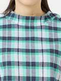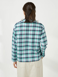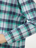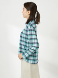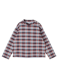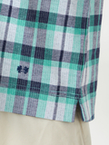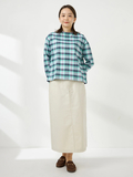 コットン100%のシングルジャカード素材は、丁寧に織られたオリジナルチェック柄です。大柄でインパクトがありながら、奥行きのある柔らかな表情が魅力です。肌離れの良い少しハリのある素材感で、軽やかな着心地に仕上がっています。