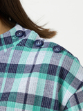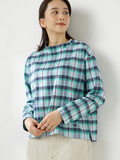 大きめチェックのプルオーバーは、シンプルなパンツやスカートに合わせるだけで、春らしさが引き立ちます。主役として着映えするため、スタイリングはすっきりとまとめるのがおすすめです。