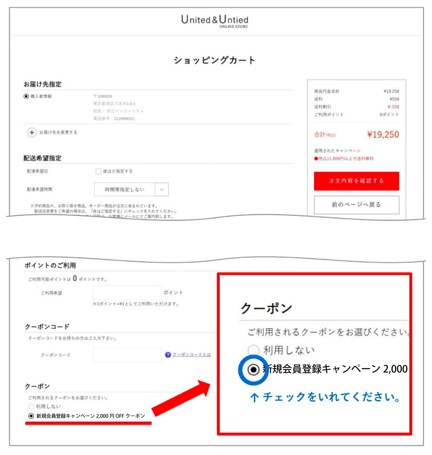 【新規入会登録キャンペーン2,000円OFFクーポン】へチェックを入れてご利用ください。