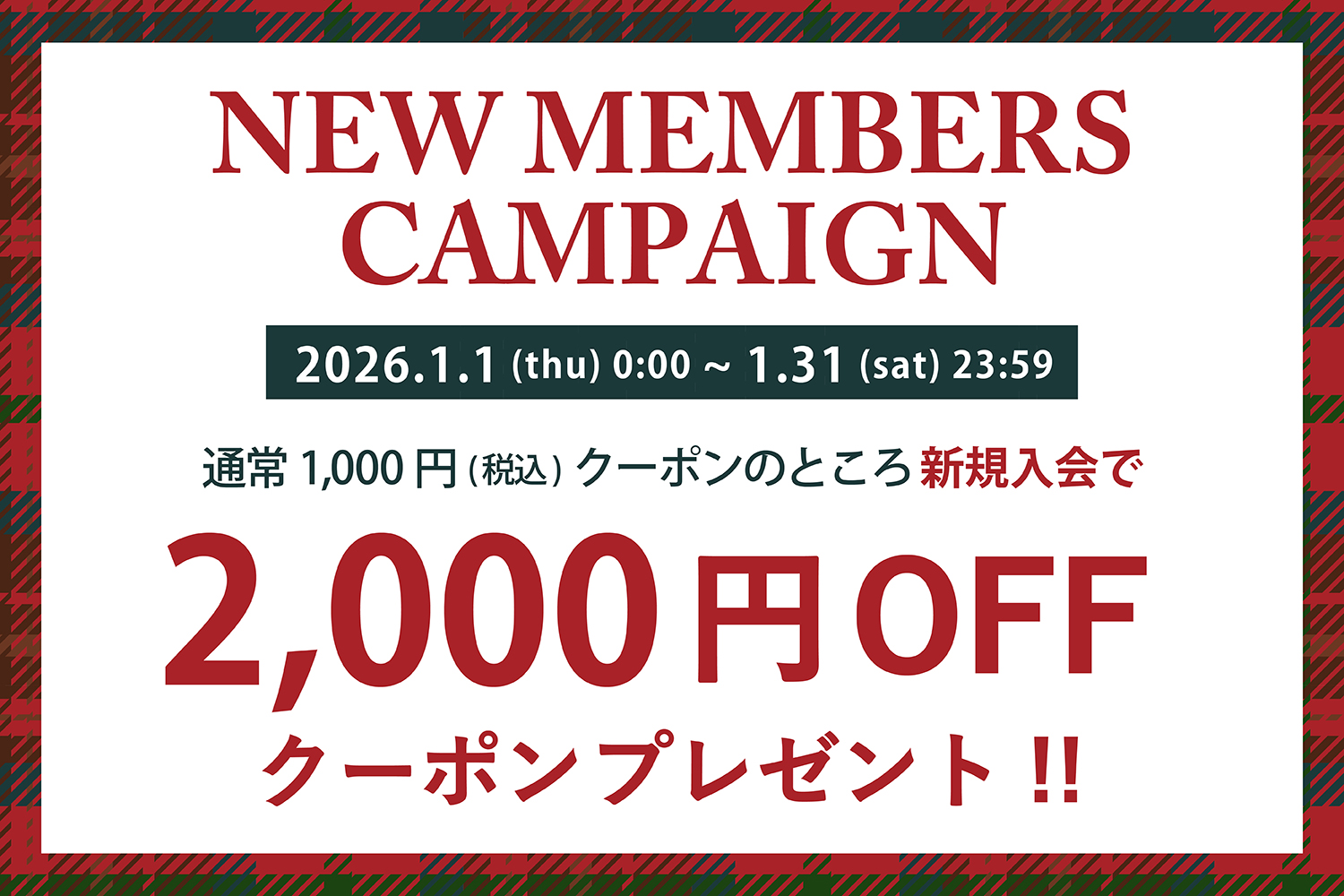2026年1月1日 (木) 0:00 ~ 1月31日 (土) 23:59